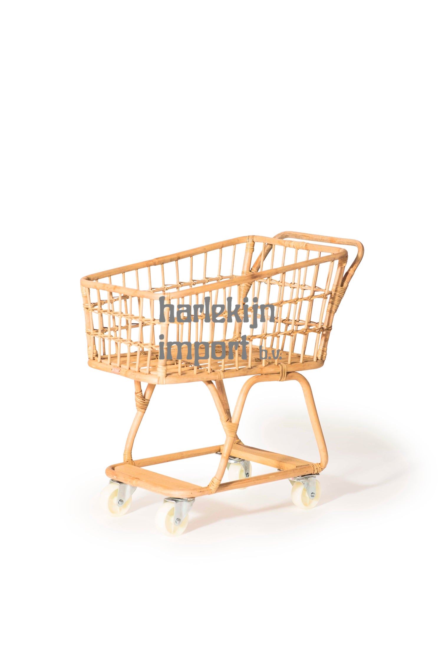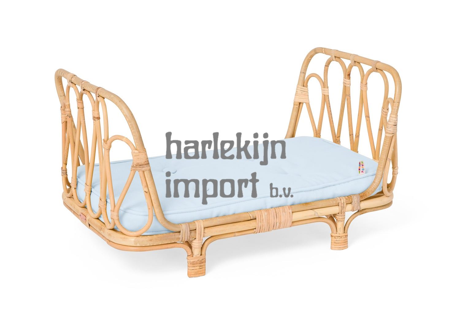 PT1810 Poppie rotan poppenbedje met blauw matrasje.