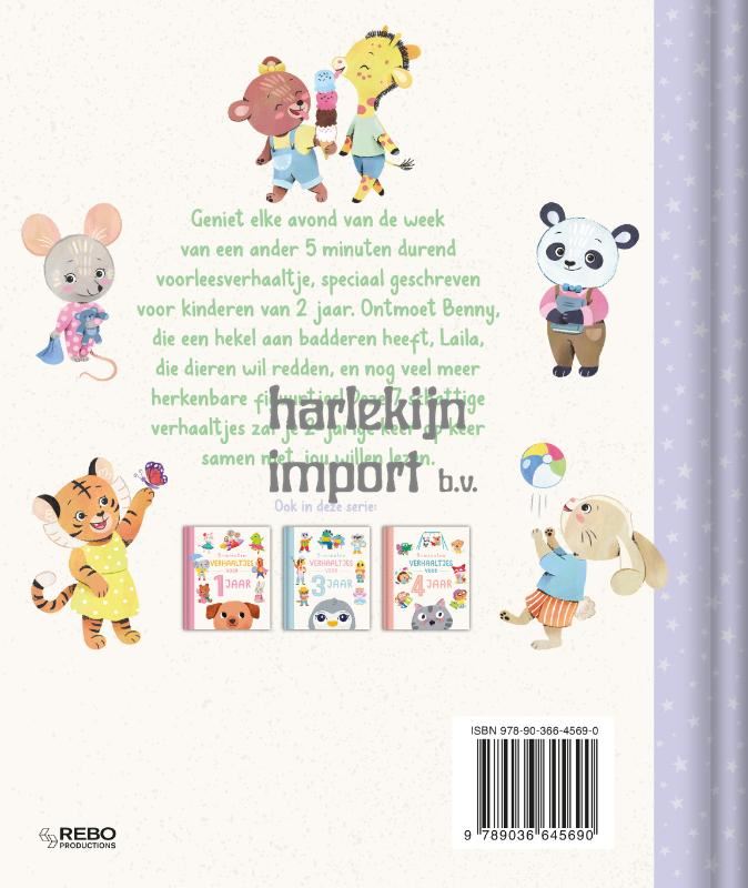 Geniet elke avond van de week van een ander 5 minuten durend voorleesverhaaltje, speciaal geschreven voor kinderen van 2 jaar. Ontmoet Benny, die een hekel aan badderen heeft, Laila, die dieren wil redden, en nog veel meer herkenbare figuurtjes! Deze 7 schattige verhaaltjes zal je 2-jarige keer op keer samen met jou willen lezen.
