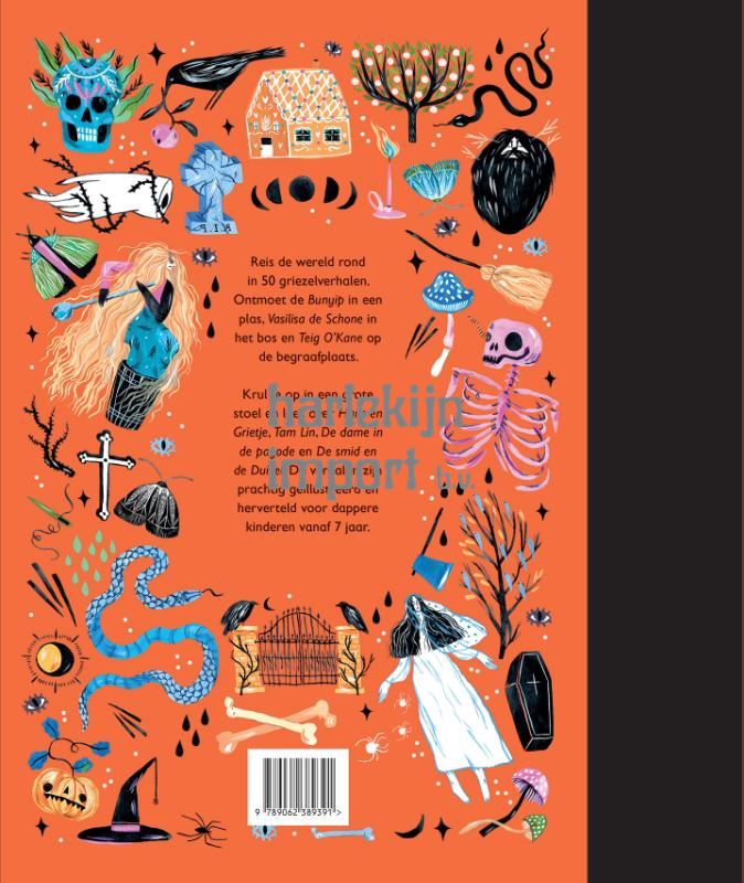 Lekker griezelen met de spannendste verhalen van over de hele wereld. Terwijl de rillingen aangenaam over je rug lopen, maak je kennis met de spannendste verhalen. Ontmoet Vasilisa en de oude heks Baba Yaga in haar huis op kippenpootjes, de Bunyip met zijn druipende slagtanden en boze gele ogen of tref Teig Oáne op de begraafplaats. Alle verhalen zijn prachtig geïllustreerd en herverteld voor dappere kinderen vanaf 7 jaar.