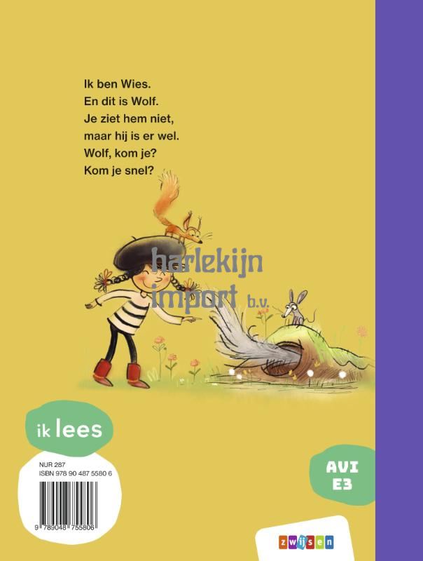 Ik ben Wies. En dit is Wolf. Je ziet hem niet, maar hij is er wel. Wolf, kom je? Kom je snel? Wies tekent een bos. Ze maakt een tak, een dier, nog een dier en dan ... verschijnt Wolf op haar papier! Wolf is groot en grijs. Hij ziet er stoer uit met zijn scherpe tanden en hij is vast ook sterk. Maar hij is ook een beetje bang, alles is nieuw voor hem in dit getekende bos. Dan hoort hij Wies roepen. Help! Brand! Ze is in gevaar! Wat zal Wolf doen? Wies en Wolf is een spannend en fantasierijk AVI E3-verhaal voor kinderen van 6 tot 7 jaar over moed en vriendschap, met een vleugje magie!