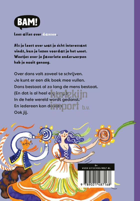 Als je leest over wat je écht interessant vindt, kun je lezen voordat je het weet. Weetjes over je favoriete onderwerpen heb je nooit genoeg. Bam! Lees alles over dansen.‘Nieuwsgierige kinderen kunnen hun hart ophalen aan deze toffe serie. Een aanrader voor kinderen die ongeveer één jaar leesonderwijs hebben gehad.’ – Kinderboekenjournaal‘Kinderen [worden] uitgedaagd om soms een stapje te doen over de grenzen van hun kunnen.’ – Libris Kinderboek van de maand‘De informatieve teksten zijn speels, grappig en vrolijk. De taal is rijk en uitdagend.’ – Boekwijzer ‘Een waardevolle toevoeging aan de steeds mooiere verzameling aan lerenlezenboeken die de laatste tijd verschijnen. Ik heb nu al zin in de andere delen!’ – Lang leve lezen‘Hier word ik zo blij van! Alweer zo’n toffe serie die niet zo strak vast houdt aan het AVI niveau!’ – Leesadvies 'Soms ontdek je nieuwe boeken waarbij je meteen denkt: waarom heeft iemand zoiets niet eerder gemaakt?' - Reformatorisch Dagblad