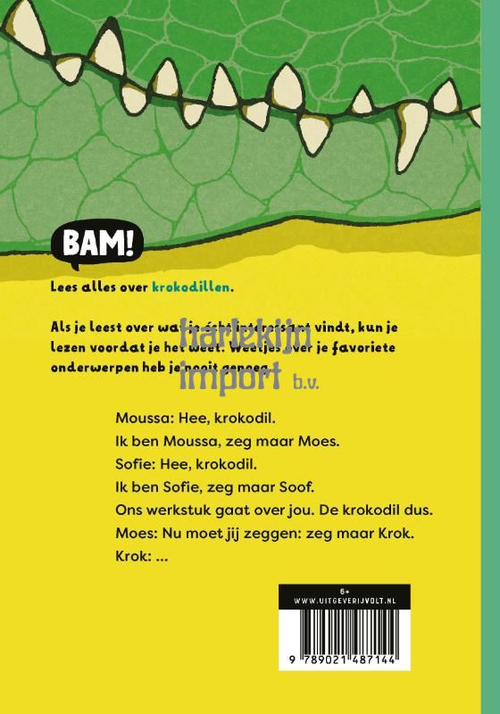 Als je leest over wat je écht interessant vindt, kun je lezen voordat je het weet. Weetjes over je favoriete onderwerpen heb je nooit genoeg. Bam! Lees alles over krokodillen.‘Nieuwsgierige kinderen kunnen hun hart ophalen aan deze toffe serie. Een aanrader voor kinderen die ongeveer één jaar leesonderwijs hebben gehad.’ – Kinderboekenjournaal‘Kinderen [worden] uitgedaagd om soms een stapje te doen over de grenzen van hun kunnen.’ – Libris Kinderboek van de maand‘De informatieve teksten zijn speels, grappig en vrolijk. De taal is rijk en uitdagend.’ – Boekwijzer ‘Een waardevolle toevoeging aan de steeds mooiere verzameling aan lerenlezenboeken die de laatste tijd verschijnen. Ik heb nu al zin in de andere delen!’ – Lang leve lezen‘Hier word ik zo blij van! Alweer zo’n toffe serie die niet zo strak vast houdt aan het AVI niveau!’ – Leesadvies 'Soms ontdek je nieuwe boeken waarbij je meteen denkt: waarom heeft iemand zoiets niet eerder gemaakt?' - Reformatorisch Dagblad