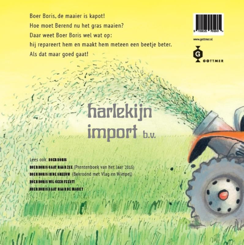 Welk kind zou niet Boer Boris willen zijn? Hij heeft zijn eigen boerderij en kan lekker de hele dag rondrijden op zijn rode tractor. Maar boeren moeten ook hard werden. En zéker als ze zo slim zijn als Boer Boris. Want als de maaier kapot gaat, moet Boer Boris hem repareren. En hij wordt mooier dan-ie ooit was! Maar dan gaat de buurman ermee rijden en gaat de maaimachine weer kapot en daarna krijgt de schooljuf een ongelukje. Elke keer dat de maaier kapotgaat, maakt Boris ’m nog mooier en supersonischer dan hij al was. Zelfs de fabrieksdirecteur wil er een hebben!