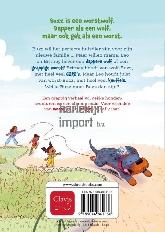 Buzz is een worstwolf. Dapper als een wolf, maar ook gek als een worst. Buzz wil het perfecte huisdier zijn voor zijn nieuwe familie … Maar willen mama, Leo en Britney liever een dappere wolf of een grappige worst? Britney houdt van wolf-Buzz, met heel veel GRRR’s. Maar Leo houdt juist van worst-Buzz, met heel veel knuffels. Welke Buzz moet Buzz dan zijn? Een grappig verhaal vol gekke hondenavonturen en een slimme muis. Voor vrienden van worstjes en wolfjes vanaf 7 jaar.