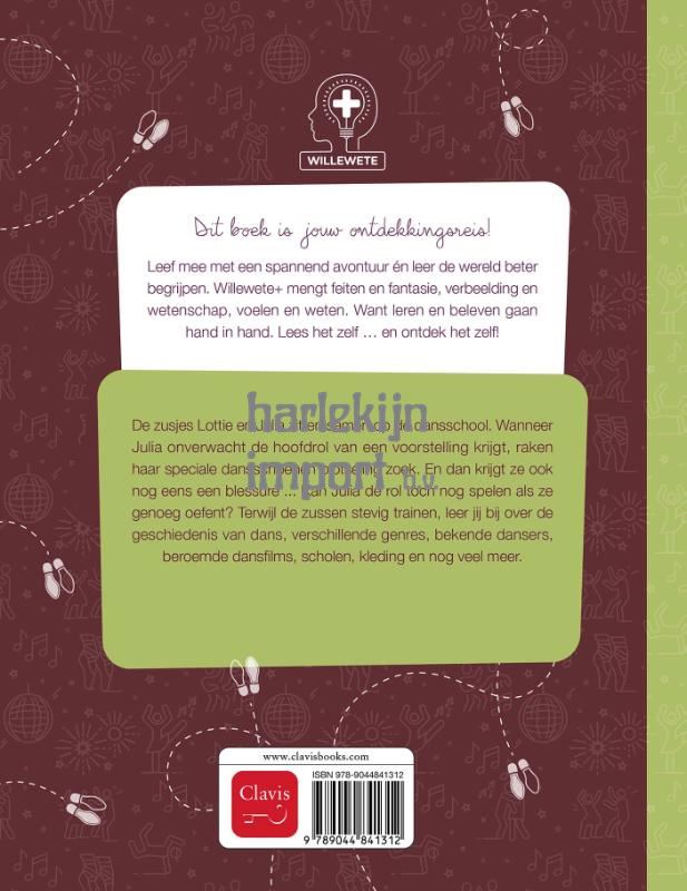 Leef mee met een spannend avontuur én leer de wereld beter begrijpen. Willewete+ mengt feiten en fantasie, verbeelding en wetenschap, voelen en weten. Want leren en beleven gaan hand in hand. Lees het zelf … en ontdek het zelf! De zusjes Lottie en Julia zitten samen op de dansschool. Wanneer Julia onverwacht de hoofdrol van een voorstelling krijgt, raken haar speciale dansschoenen plotseling zoek. En dan krijgt ze ook nog eens een blessure ... Kan Julia de rol toch nog spelen als ze genoeg oefent? Terwijl de zussen stevig trainen, leer jij bij over de geschiedenis van dans, verschillende genres, bekende dansers, beroemde dansfilms, scholen, kleding en nog veel meer. Een boek boordevol informatie en een meeslepend verhaal over dans. Voor nieuwsgierige lezers vanaf 10 jaar.