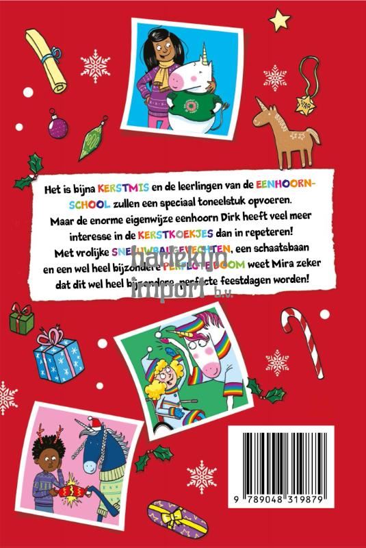 Het is bijna kerstmis en de leerlingen van de Eenhoornschool zullen een speciaal toneelstuk opvoeren. Maar de enorm eigenwijze eenhoorn Dirk heeft veel meer interesse in de kerstkoekjes dan in repeteren! Met vrolijke sneeuwbalgevechten, een schaatsbaan en een wel heel bijzondere perfecte boom weet Mira zeker dat dit wel heel bijzondere, perfecte feestdagen worden! Pip Bird is het pseudoniem van een succesvolle Engelse auteur met tientallen boeken op zijn/haar naam. David O’Connell is onder meer bekend als auteur en illustrator van de boeken in de Monstersnackbarserie, die mínstens net zo grappig zijn als zijn illustraties van eenhoorn Dirk.