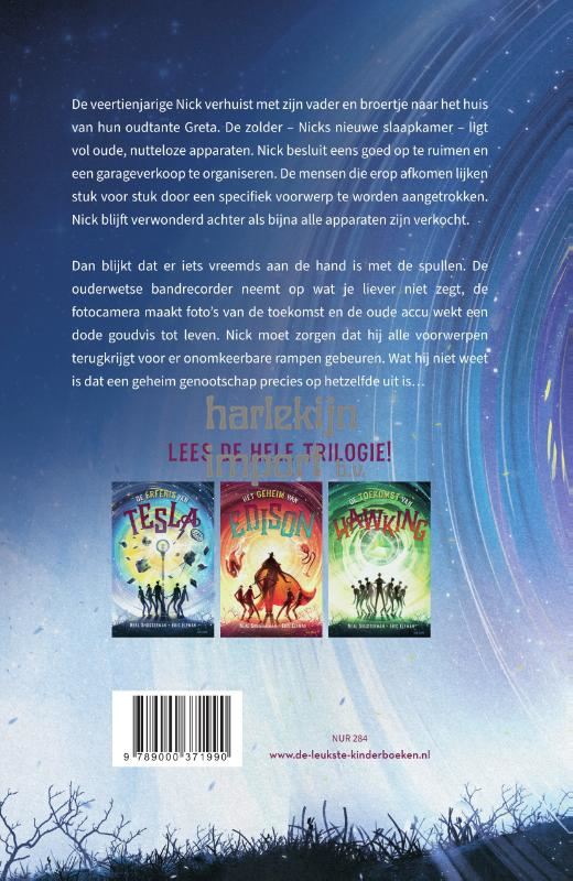 Dan blijkt dat er iets vreemds aan de hand is met de spullen. De ouderwetse bandrecorder neemt op wat je liever niet zegt, de fotocamera maakt foto's van de toekomst en de oude accu wekt een dode goudvis tot leven. Nick moet zorgen dat hij alle voorwerpen terugkrijgt, voor er onomkeerbare rampen gebeuren. Wat hij niet weet is dat een geheim genootschap precies op hetzelfde uit is…