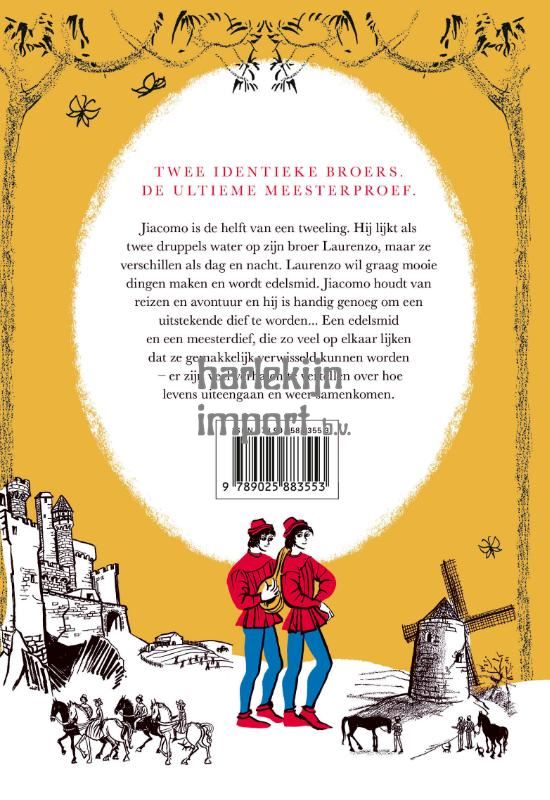 Laurenzo en Jiacomo lijken op elkaar als twee druppels water, of als twee zandkorrels. Niemand weet wie de een is, en wie de ander. Maar dat is alleen hun uiterlijk – wat ze doen en hoe; dat is heel verschillend… En omdat ze voortdurend verwisselen wie wie is, maken ze hun avontuur spannend en onvoorspelbaar, zelfs voor elkaar.