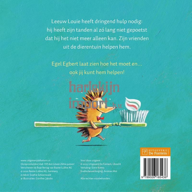 Leeuw Louie heeft dringend hulp nodig: hij heeft zijn tanden al zó lang niet meer gepoetst dat hij het niet meer alleen kan. Zijn vrienden uit de dierentuin helpen hem. Egel Egbert vertelt hoe het moet en… ook de lezers kunnen hun bijdrage leveren! Spelenderwijs leren jonge kinderen hoe ze moeten tandenpoetsen.