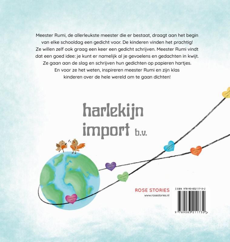 Meester Rumi, de allerleukste meester die er bestaat, draagt aan het begin van elke schooldag een gedicht voor. De kinderen vinden het prachtig! Ze willen zelf ook graag een keer een gedicht schrijven. Meester Rumi vindt dat een goed idee: je kunt er namelijk al je gevoelens en gedachten in kwijt. Ze gaan aan de slag en schrijven hun gedichten op papieren hartjes. En voor ze het weten, inspireren meester Rumi en zijn klas kinderen over de heel wereld om te gaan dichten!