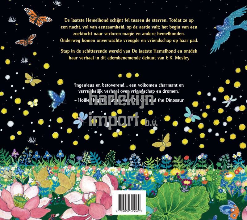 De laatste Hemelhond schijnt fel tussen de sterren. Totdat ze op een nacht, vol van eenzaamheid, op de aarde valt; het begin van een zoektocht naar verloren magie en andere hemelhonden. Onderweg komen onverwachte vreugde en vriendschap op haar pad. Stap in de schitterende wereld van De laatste Hemelhond en ontdek haar verhaal in dit adembenemende debuut van E.K. Mosley.