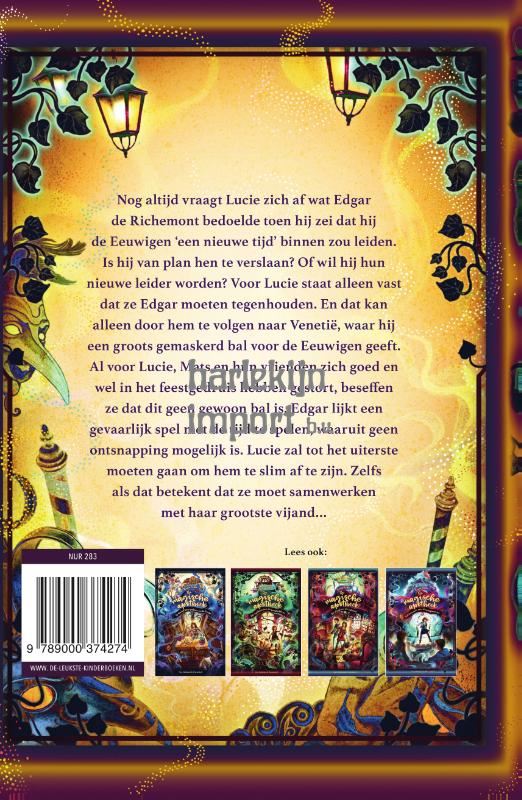 ‘Een nieuw tijdperk voor de Eeuwigen breekt aan!’ Niemand weet precies wat Edgar de Richemont hier precies mee bedoelt. Is hij van plan de Eeuwigen te verslaan? Of wil hij hun nieuwe leider worden? Voor Lucie, Mats en hun vrienden staat vast dat ze Edgar alleen kunnen tegenhouden door hem naar Venetië te volgen. Daar zal een groots gemaskerd bal plaatsvinden. Maar nog voor Lucie en haar vrienden zich goed en wel in het feestgedruis kunnen storten, beseffen ze al dat dit geen gewoon bal is. Er wordt een gevaarlijk spel met de tijd gespeeld, waaruit geen ontsnapping mogelijk lijkt…