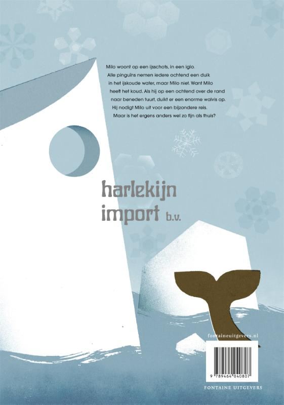 is namelijk een pinguïn. Alle pinguïns nemen iedere ochtend een duik in het ijskoude water, maar Milo niet. Want Milo heeft het koud. Terwijl hij over de rand naar beneden tuurt, duikt er ineens een enorme walvis voor zijn neus op. En met die ontmoeting begint een bijzondere reis voor Milo. Hij ontdekt kleuren, planten en warmte. Maar is het ergens anders echt wel zo fijn als thuis?