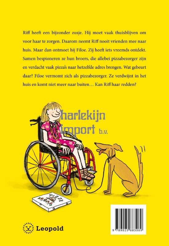 Riff heeft een bijzonder zusje. Hij moet vaak thuisblijven om voor haar te zorgen. Daarom neemt Riff nooit vrienden mee naar huis. Maar dan ontmoet hij Filoe. Zij heeft iets vreemds ontdekt. Samen bespioneren ze hun broers, die allebei pizzabezorger zijn en verdacht vaak pizza’s naar hetzelfde adres brengen. Wat gebeurt daar? Filoe vermomt zich als pizzabezorger. Ze verdwijnt in het huis en komt niet meer naar buiten… Kan Riff haar redden?