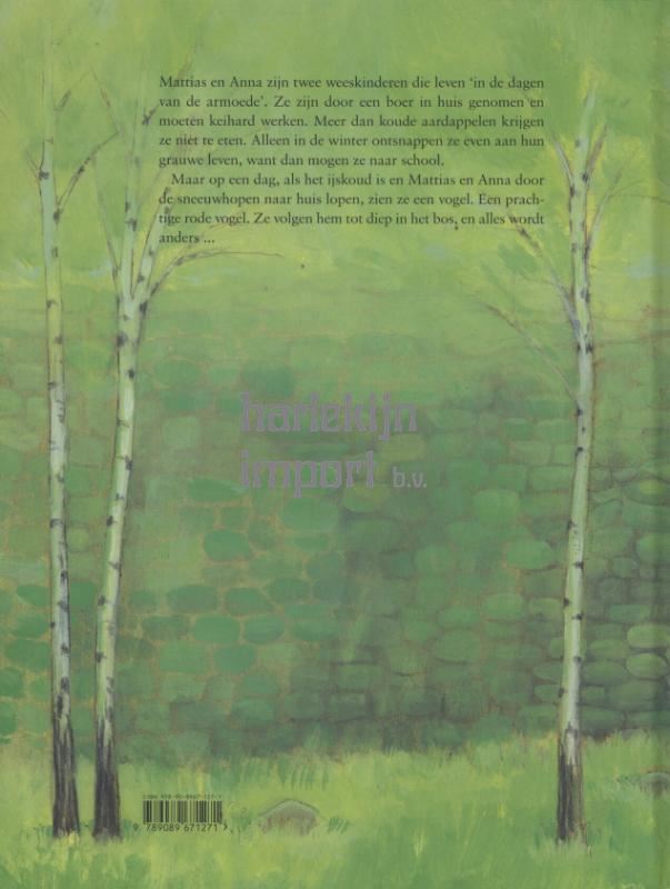 Op een dag, als ze door de sneeuw naar school lopen, zien Mattias en Anna een rode vogel.