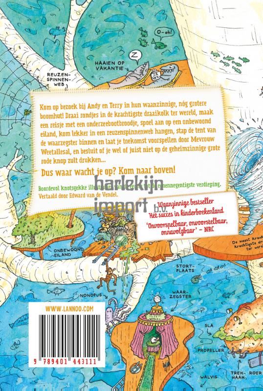 Kom op bezoek bij Andy en Terry in hun waanzinnige, nóg grotere boomhut! Draai rondjes in de krachtigste draaikolk ter wereld, maak een reisje met een onderzeebootbroodje, spoel aan op een onbewoond eiland, kom lekker in een reuzenspinnenweb hangen, stap de tent van een waarzegster binnen en laat je toekomst voorspellen door Mevrouw Weetallesal, en besluit of je wel of juist niet op de geheimzinnige grote rode knop zult drukken...