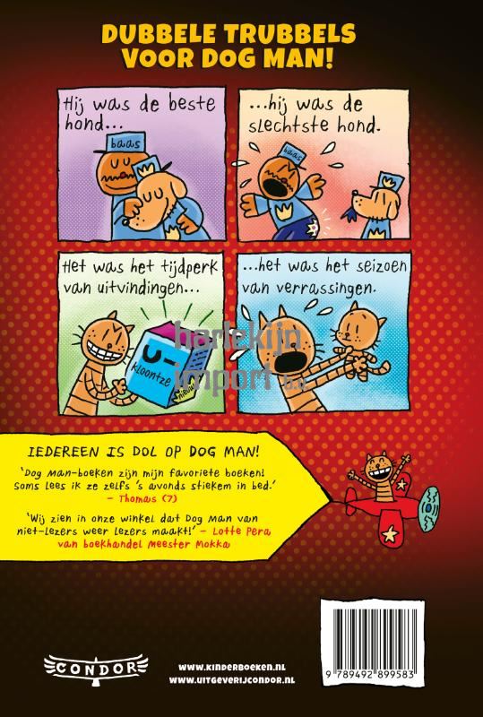 Een spannend boek vol vrolijke tekeningen, bizarre grappen en geweldige nieuwe personages. Met achterin weer leuke tekentips, waarmee je met gemak allerlei Dog Man-figuren natekent. Geschreven en getekend door Dav Pilkey en vertaald door Tjibbe Veldkamp.