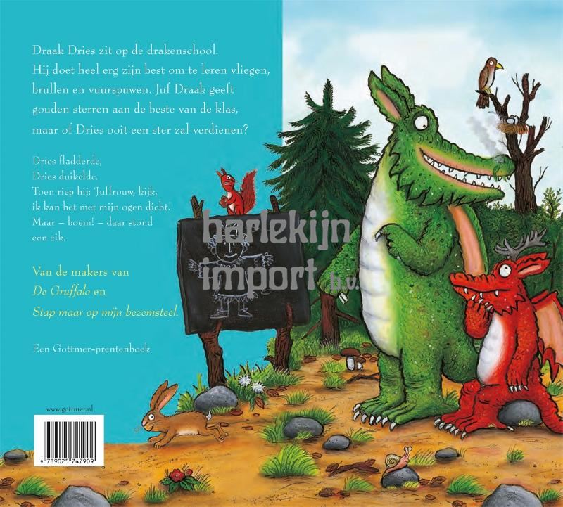 Dries is een draakje. Hij zit op de drakenschool, waar hij leert hoe hij een grote, gevaarlijke, vliegende, vuurspuwende draak kan worden. Dat gaat hem nog niet al te best af, maar gelukkig krijgt hij hulp van een stoere meid, die hem, als het misgaat met vliegen of vuur spuwen, verzorgt met verbandjes, pilletjes en pleisters.