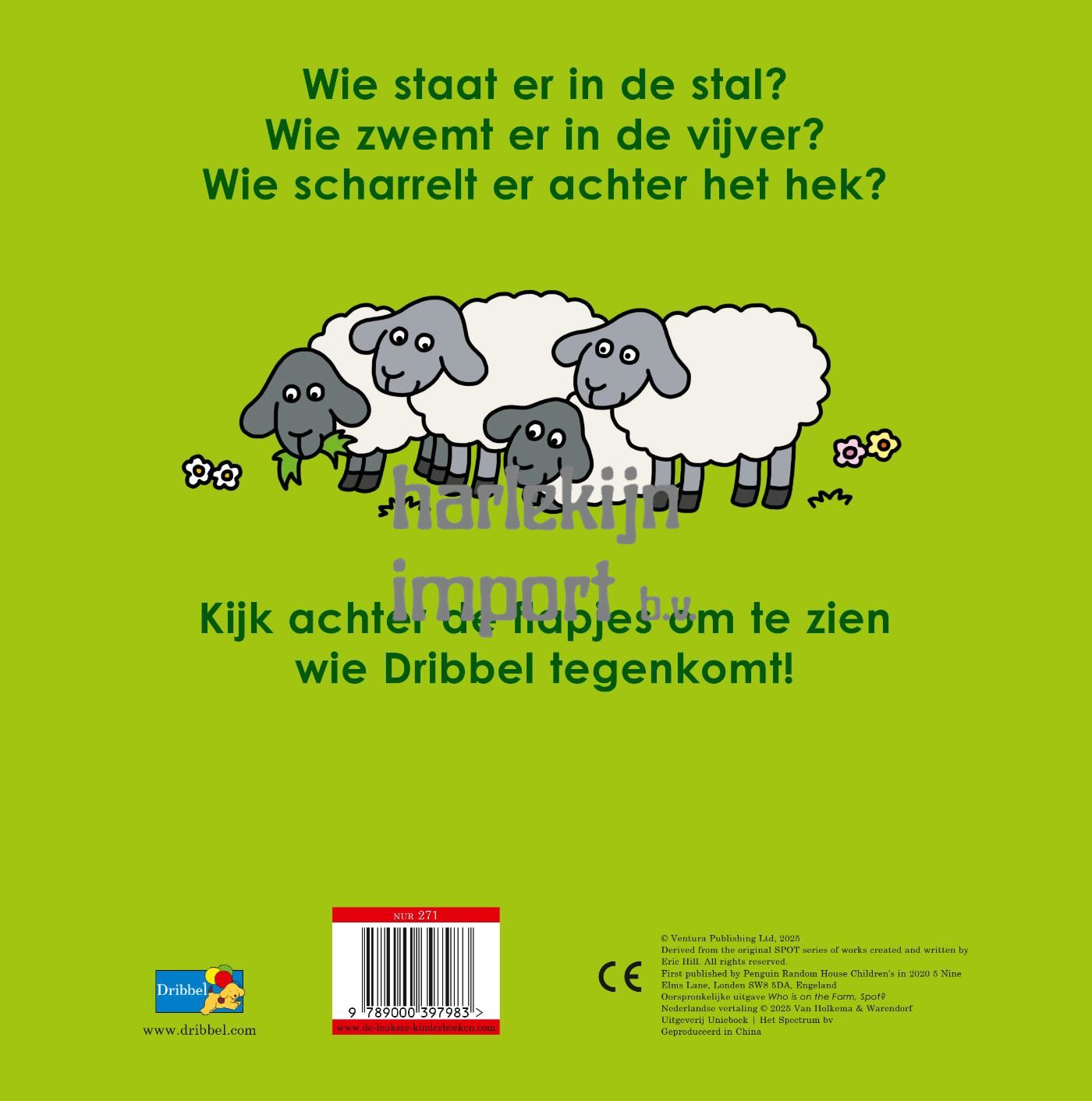 Ga met Dribbel mee naar de boerderij! Dribbel brengt samen met zijn moeder een bezoekje aan de boerderij! Daar hoort hij allerlei geluiden die hij nog niet kent. Kijk achter de dubbele flapjes en ontdek samen met Dribbel wie er allemaal op de boerderij wonen. Dribbel op de boerderij is een nieuw avontuur waarin de nieuwsgierigheid en verbeelding van peuters vanaf 18 maanden worden geprikkeld. Met de interactieve dubbele flapjes oefenen ze spelenderwijs hun motoriek. Stevig kartonboek met dubbele flapjes en afgeronde hoeken die geschikt zijn voor kleine handen