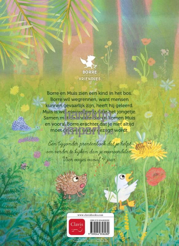 Borre en Muis zien een kind in het bos. Borre wil wegrennen, want mensen kunnen gevaarlijk zijn, heeft hij geleerd. Muis is wel nieuwsgierig naar het jongetje. Samen met de andere dieren komen Muis en vooral Borre erachter dat je niet altijd moet geloven wat er gezegd wordt. Een bijzonder prentenboek dat je helpt om verder te kijken dan je vooroordelen. Voor vosjes vanaf 4 jaar.