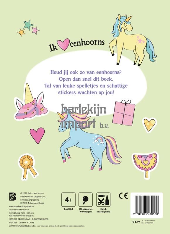 Houd jij ook zo van eenhoorns? Open dan snel dit boek. Tal van leuke spelletjes en schattige stickers wachten op jou! Voor wie maar niet genoeg kan krijgen van eenhoorns!