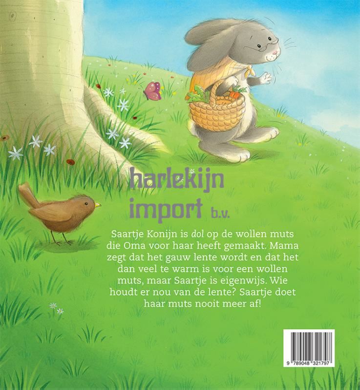 Saartje Konijn is dol op de wollen muts die Oma voor haar heeft gemaakt. Mama zegt dat het gauw lente wordt en dat het dan veel te warm is voor een wollen muts, maar Saartje is eigenwijs. Wie houdt er nou van de lente? Saartje doet haar muts nooit meer af!