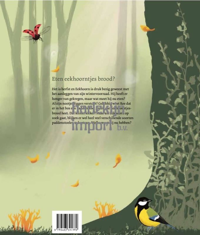 Het is herfst en Eekhoorn is druk bezig geweest met het aanleggen van zijn wintervoorraad. Hij heeft er honger van gekregen, maar wat moet hij nu eten? Al zijn nootjes liggen verstopt! Gelukkig weet Ree dat er in het bos een paddenstoel groeit die Eekhoorntjesbrood heet. Dat klinkt lekker! Maar als Eekhoorn op zoek gaat, blijken er wel heel veel verschillende soorten paddenstoelen te bestaan. Welke moet hij nu hebben? In dit prachtige prentenboek ontdek je de wereld van de paddenstoelen en kun je in elke tekening op zoek naar één van Eekhoorns verstopte nootjes. Ondertussen ontmoet je bijzondere bosdieren, zoals de boomklever die weet of er echt elfjes op een elfenbankje zitten en de vliegen die zo hun eigen mening hebben over de naam ‘stinkzwam’. De regenworm vertelt wat zich onder de grond afspeelt en de kikker laat zien wat er ’s nachts met de echte honingzwam gebeurt… In dit aansprekende avontuur vol prachtige bosplaten maken kinderen kennis met verschillende paddenstoelen die in Nederland voorkomen. Samen met Eekhoorn kunnen ze zich verbazen over hun grappige vormen en gekke namen. Meer informatie over elke paddenstoel staat verzameld op één spread achter in het boek, waardoor het een echt voorleesverhaal blijft!