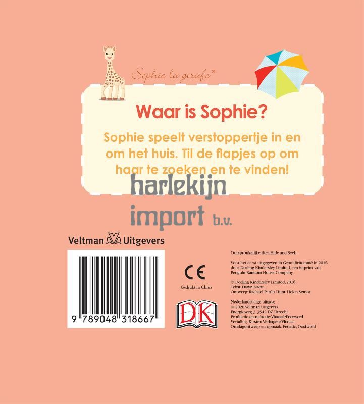 Sophie de giraf speelt verstoppertje in en om het huis. Til de flapjes op om haar te zoeken en te vinden!