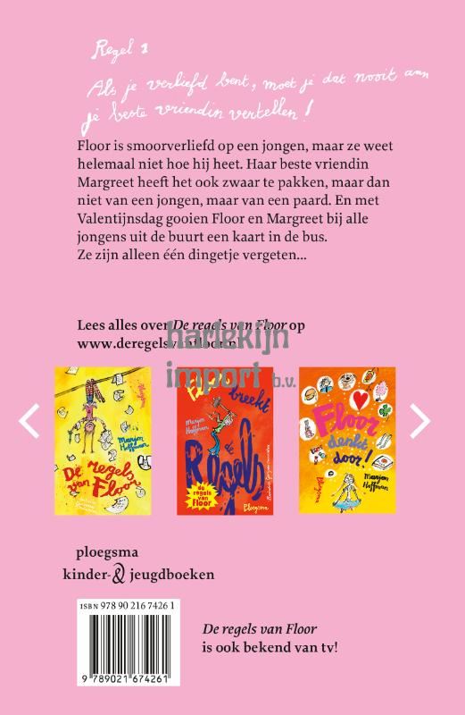 Regel 1: Als je verliefd bent, moet je dat nooit aan je beste vriendin vertellen! Floor is smoorverliefd op een jongen, maar ze weet helemaal niet hoe hij heet. Haar beste vriendin Margreet heeft het ook zwaar te pakken, maar dan niet van een jongen, maar van een paard. En met Valentijnsdag gooien Floor en Margreet bij alle jongens uit de buurt een kaart in de bus. Ze zijn alleen één dingetje vergeten... Veertien kersverse regels van Floor!