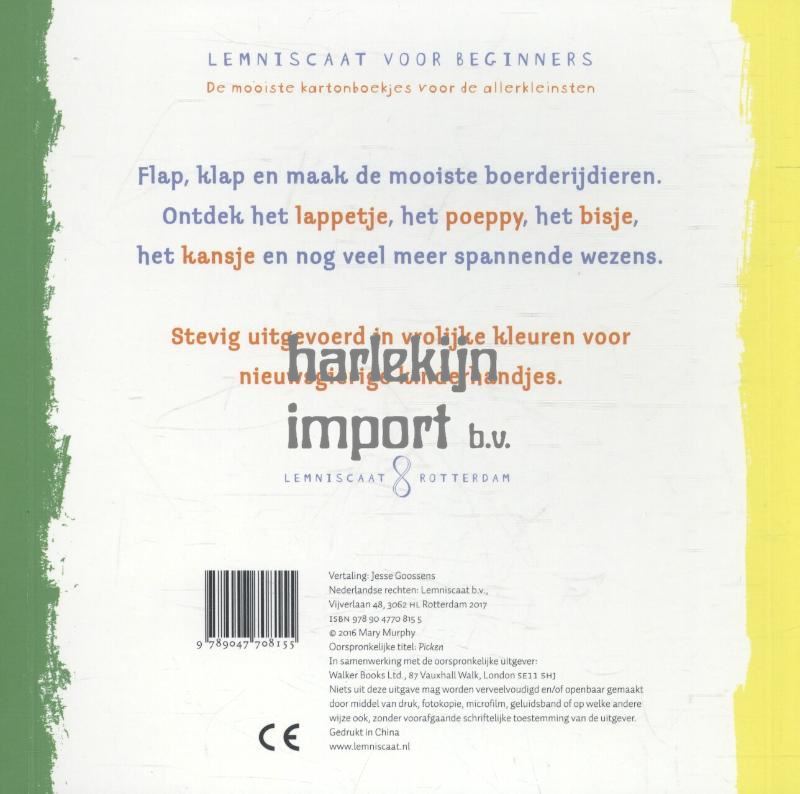 Flap, klap en maak de mooiste boerderijdieren. Ontdek het lappetje, het poeppy, het bisje, het kansje en nog veel meer spannende wezens. Stevig uitgevoerd in vrolijke kleuren voor nieuwsgierige handjes.