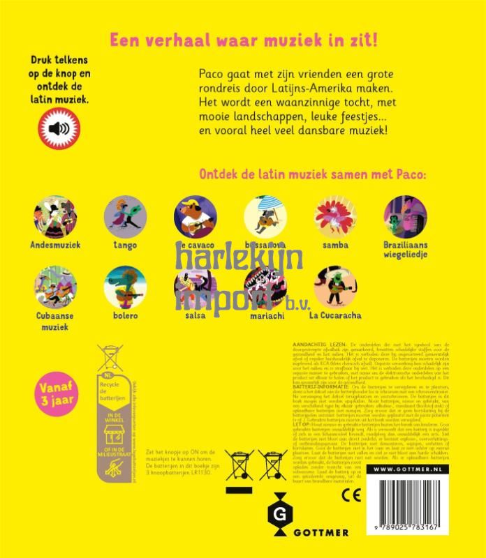 <p>'Paco en de latin' is een swingend geluidenboek waarin jonge kinderen kennismaken met Latijns-Amerikaanse muziek en ritmes. Samen met Paco reist de lezer naar zonnige oorden vol dans, kleur en opzwepende klanken.<br><br>Op elke pagina klinkt met één druk op de knop een nieuw muziekfragment in Latijnse stijl, van zwoele salsa tot energieke samba. Zo ontdekken kinderen spelenderwijs verschillende instrumenten en muziekstijlen uit Latijns-Amerika. De combinatie van luisteren, kijken en aanwijzen maakt dit boek tot een echte muzikale belevenis.<br><br>De levendige illustraties van Magali Le Huche zitten vol humor en detail en nemen peuters en kleuters mee in een wereld van feest, dans en cultuur. Het stevige kartonboek is perfect voor kleine handen en stimuleert de luistervaardigheid, muzikaal bewustzijn en concentratie.<br><br>'Paco en de latin' is een leuk muziekboek met geluid voor kinderen vanaf 3 jaar en een origineel cadeau voor jonge muziekliefhebbers. Een vrolijke toevoeging aan de populaire Paco-serie, waarin muziek centraal staat.</p>