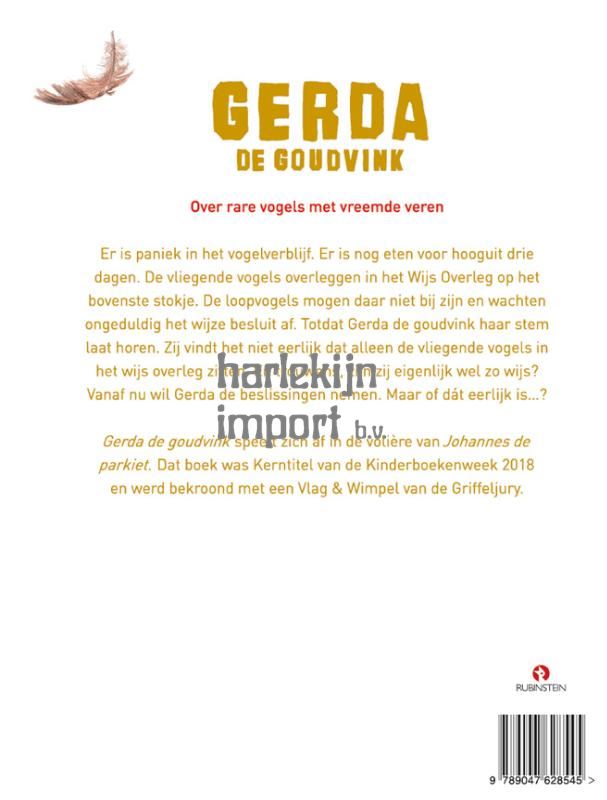 Er is paniek in het vogelverblijf. Gijs, de man die elke dag het water ververste en het zaad bijvulde, is er niet meer. Wat nu? Er is nog eten voor hooguit drie dagen. De vliegende vogels overleggen in het Wijs Overleg op het bovenste stokje. De loopvogels mogen daar niet bij zijn en wachten ongeduldig het wijze besluit af. Dan neemt Gerda de Goudvink het heft in handen. Zij vindt het namelijk niet eerlijk dat de loopvogels niet in het wijs overleg zitten, en zij ook niet. Zíj bepaalt voortaan wie er mag eten en wanneer. Het scheelt wel een hoop overleg als één vogel beslist. Maar of het ook eerlijk is…? Gerda de Goudvink speelt zich af in de volière van Johannes de Parkiet.