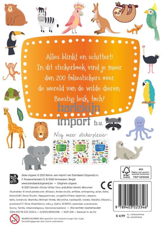 Alles blinkt en schittert! In dit stickerboek vind je meer dan 200 foliestickers over de wereld van de wilde dieren. Beestig leuk, toch? Je kunt er briefjes, boeken, schriften, ijskasten… noem maar op mee versieren.