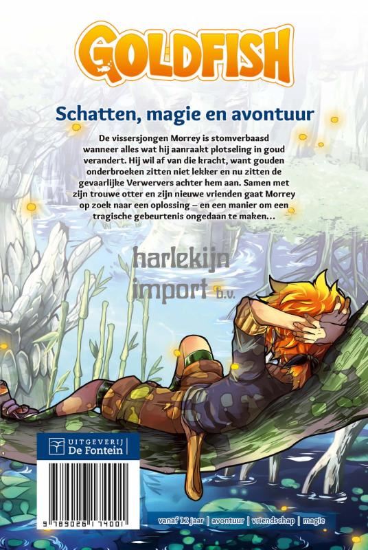 Niet alles wat glimt is goud... Zeg hallo tegen Morrey Gibbs! Hij is een vissersjongen in een wereld vol gevaarlijke gemuteerde dieren die erachter komt dat alles wat hij aanraakt opeens in goud verandert. Dat klinkt geweldig, maar gouden onderbroeken zijn toch niet zo comfortabel. Samen met zijn nieuwe vrienden gaat Morrey op een zoektocht om van zijn zegen, die een vloek is geworden, af te komen en de tragedie die het heeft veroorzaakt terug te draaien. Ze moeten alleen wel de gevaarlijke schatzoekers voor blijven… Superspannende manga voor fans van ONE PIECE! Lezers op Goodreads over Goldfish: ‘De beste manga die ik in tijden heb gelezen. […] Het doet me een beetje denken aan one piece, maar dan beter.’ ‘Het was echt een goed boek, ik lees niet veel boeken, maar ik wil meteen meer lezen.’