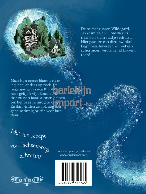 De heksenzussen Wildegard, Jakkesmina en Globella zijn naar een klein stadje verhuisd om een dierenwinkel te beginnen. Ze weten het zeker: iedereen hier wil wel een schorpioen, vuurmier of kikker hebben! Maar hun eerste klant komt met een heel andere vraag. De negenjarige Jessica Knibbel is haar geitje kwijt. Zouden de drie zussen haar kunnen helpen om het beestje terug te vinden? Dat is alleen niet het enige raadsel dat ze moeten oplossen. De drie zussen krijgen ook een anoniem briefje waarop staat dat ze niet welkom zijn in de stad. Wie zou dat briefje hebben gestuurd? En waarom? Een grappig en rijk geïllustreerd verhaal. Met een recept voor heksensoep achterin!