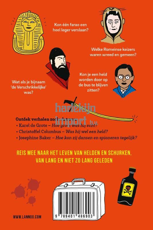 Ontdek de verhalen van Karel de Grote (was hij dan écht groot?) en Napoleon Bonaparte (was hij dan écht klein?) en nog meer helden en schurken uit de geschiedenis.