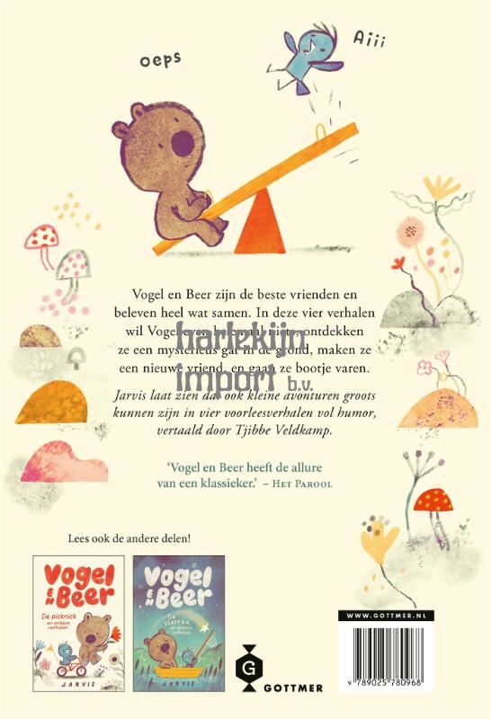 In 'Het avontuur en andere verhalen' lees je vier nieuwe verhalen over de allerbeste en onafscheidelijke vrienden Vogel en Beer. In dit derde boek staan voorleesverhalen waarin Vogel en Beer op avontuur gaan, maar zijn ze ook gewoon samen thuis helemaal niets aan het doen. Soms zijn ze misschien een tikje jaloers, bijvoorbeeld als de ander een nieuwe vriend maakt. Of ze raken elkaar kwijt in het grote bos, als een van de twee lekker loopt te dagdromen. Maar samen verzinnen ze altijd een oplossing, want uiteindelijk vinden ze niets belangrijker dan hun beste vriend blij maken. Jarvis, de getalenteerde Britse prentenboekenmaker, brengt met veel humor een ode aan kleine avonturen en vriendschap. Zijn levendige, speelse illustraties bezitten een unieke charme en zijn boeken zitten vol vrolijke personages en kleurrijke werelden. Het eerste voorleesboek over Vogel en Beer, 'De picknick en andere verhalen' werd jubelend ontvangen door de Nederlandse pers: 'De Vogel en Beer-verhalen van Jarvis roepen een grote glimlach op' (Trouw) en 'Vogel en Beer heeft de allure van een klassieker' (Het Parool). Ook het tweede deel van Vogel en Beer, 'De sterren en andere verhalen', is door de lezers omarmd. 'Vogel en Beer 3 - Het avontuur en andere verhalen' is net als de andere twee Vogel en Beer-boeken vertaald door Tjibbe Veldkamp. Dit kinderboek kun je voorlezen aan kinderen van 5 jaar en ouder.