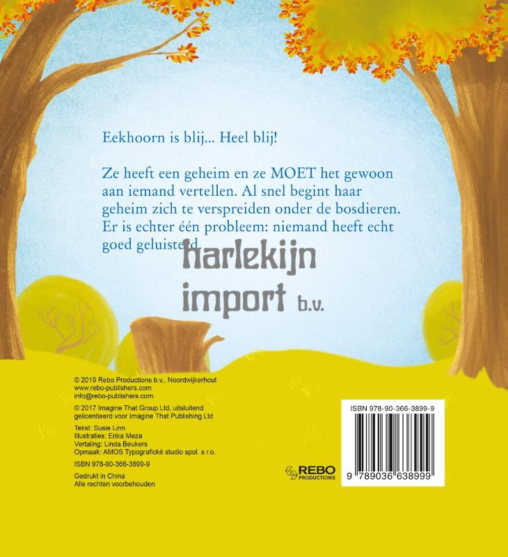 Eekhoorn is blij... Heel blij! Ze heeft een geheim en zo MOET het gewoon aan iemand vertellen. Al snel begint haar geheim zich te verspreiden onder de bosdieren. Er is echter één probleem: niemand heeft echt goed geluisterd.
