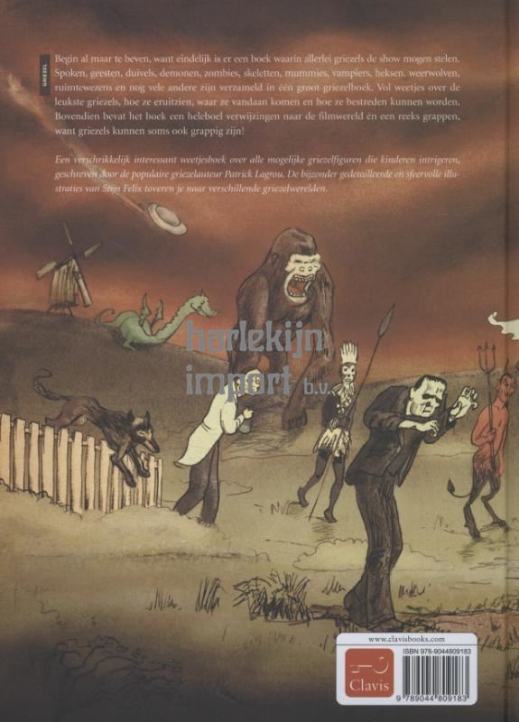 Een boek vol met spoken, geesten, duivels, mummies, vampiers, heksen, gekke professoren, weerwolven, ruimtewezens en zo veel meer ¿ Kan dat? Ja, de bekende jeugdauteur Patrick Lagrou dook in de wondere wereld van de griezels en vond het daar zo bijzonder dat hij ze allemaal in één boek verzamelde. Je vindt hier allerlei weetjes over leuke en minder leuke griezels, zoals hoe ze er meestal uitzien, waar ze vandaan komen, hoe ze bestreden kunnen worden...