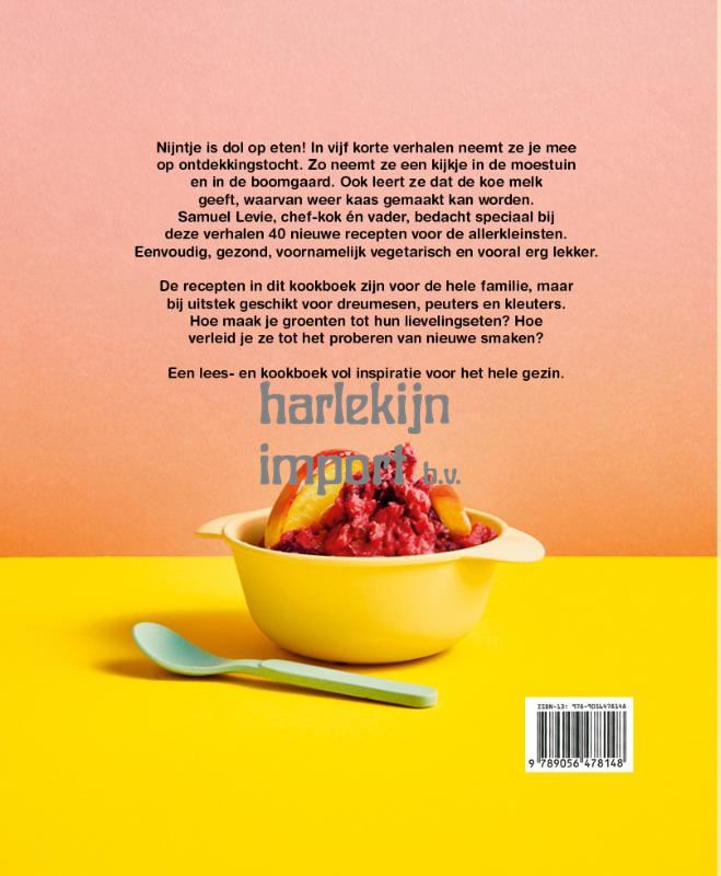 “Genomineerd voor het Gouden Kookboek 2019.” Nijntje is dol op eten! In vijf korte verhalen neemt ze je mee op ontdekkingstocht. Zo neemt ze een kijkje in de moestuin en in de boomgaard. Ook leert ze dat de koe melk geeft, waarvan weer kaas gemaakt kan worden. Samuel Levie, chef-kok én vader, bedacht speciaal bij deze verhalen 40 nieuwe recepten voor de allerkleinsten. Eenvoudig, gezond, voornamelijk vegetarisch en vooral erg lekker. De recepten in dit kookboek zijn voor de hele familie, maar bij uitstek geschikt voor dreumesen, peuters en kleuters. Hoe maak je groenten tot hun lievelingseten? Hoe verleid je ze tot het proberen van nieuwe smaken? Een lees- en kookboek vol inspiratie voor het hele gezin. Ook verschenen in deze serie: 'trakteren met nijntje'