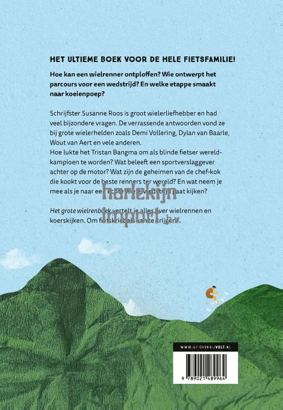 Hoe kan een renner ontploffen? Hoe ‘maak’ je een parcours? En waarom smaken sommige etappes naar koeienpoep? Wielrennen en kijken naar de koers worden steeds populairder. Ook onder het jonge publiek groeit het enthousiasme. Honderden kinderen staan langs het parcours van grote wielerwedstrijden of ze juichen thuis voor het scherm hun fietshelden en -heldinnen toe. Met het Het grote wielrenboek vertelt Susanne Roos je alles wat je moet weten over wielrennen en koersen. Met verrassende vragen en prachtige antwoorden en verhalen van fietshelden zoals Demi Vollering, Mathieu van der Poel, Wout van Aert, Lucinda Brand en Dylan van Baarle. Hoe lukte het Tristan Bangma bijvoorbeeld om als blinde fietser wereldkampioen te worden? Wat beleeft een sportverslaggever achter op de motor? En wat zijn de geheimen van de chef-kok die kookt voor de beste fietsers van de Tour de France? Het grote wielrenboek geeft een veelzijdig kijkje achter de schermen van het wielrennen. Kortom: het perfecte boek voor de hele fietsfamilie! Om koerskriebels van te krijgen.