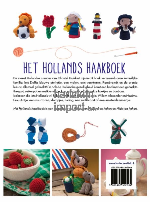 Voor dit boek zijn de meest Hollandse creaties van Christel Krukkert verzameld: onze koninklijke familie, het kussende stelletje in Delfts Blauw, een molen, een vuurtoren, Rembrandt en de oranje leeuw. Ook de Hollandse gezelligheid komt aan bod met een gehaakte theepot, suikerpot en melkkannetje, kop en schotel en gehaakte koekjes en bonbons.
