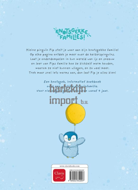 Kleine pinguïn Pip stelt je voor aan zijn knotsgekke familie! In elke zoekplaat ontdek je alles over de keizerspinguïns. Laat je onderdompelen in hun wereld van ijs en sneeuw en leer van Pips familie hoe ze zichzelf warm houden, waarom ze niet kunnen vliegen, en zo veel meer. Trek maar snel iets warms aan, dan laat Pip je alles zien! Een knotsgek, informatief zoekboek over een vrolijke pinguïnfamilie. Voor nieuwsgierige speurneuzen vanaf 4 jaar.