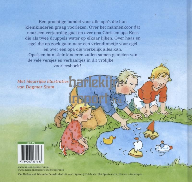 Een prachtige bundel voor alle opa’s die hun kleinkinderen willen voorlezen én voor kinderen die graag zelf lezen. Dit boek bevat allerlei vrolijke en grappige versjes en verhaaltjes van het bekende schrijversduo Marianne Busser en Ron Schröder. Over het mannenkoor, haas en egel, de blote koning en de drie jongetjes. Maar natuurlijk komt er ook vaak een aardige opa in de verhalen voor. Een heerlijk boek waar iedereen van zal genieten!