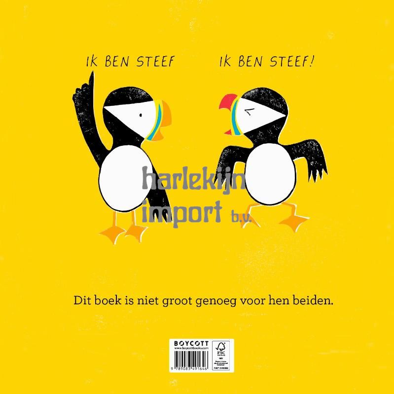 Wanneer Steef Steef ontmoet, kunnen ze het allebei niet geloven. Eén van hen moet toch wel de échte Steef zijn, de beste Steef, de Steef der Steven...? De opschepperij van de papegaaiduikers wordt steeds gekker en ontaardt al snel in een ware scheldpartij – totdat beide Steven beseffen dat een naam nou niet echt iets is om ruzie over te maken. De kibbelende papegaaiduikers vangen precies de speelse ruzies die kinderen soms hebben en hoe zinloos die zijn.