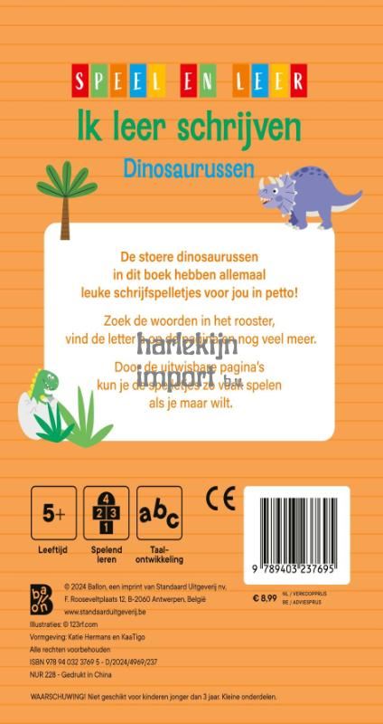 In dit spelletjesblok met viltstift vind je allemaal leuke schrijfspelletjes in het thema dino's. Door de uitwisbare pagina's kun je de spelletjes zo vaak spelen als je maar wilt. En door het handige formaat neem je dit boek overal mee naartoe!