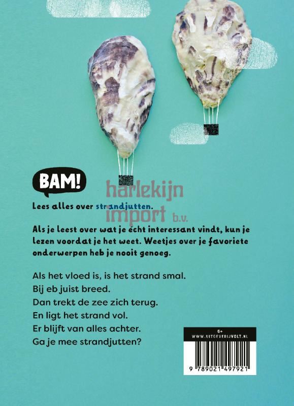 Bam! Lees alles over strandjutten.Als je leest over wat je écht interessant vindt, kun je lezen voordat je het weet. Weetjes over je favoriete onderwerpen heb je nooit genoeg.Als het vloed is, is het strand smal.Bij eb juist breed.Dan trekt de zee zich terug.En ligt het strand vol.Er blijft van alles achter.Ga je mee strandjutten?‘Nieuwsgierige kinderen kunnen hun hart ophalen aan deze toffe serie. Een aanrader voor kinderen die ongeveer één jaar leesonderwijs hebben gehad.’ – Kinderboekenjournaal‘Kinderen [worden] uitgedaagd om soms een stapje te doen over de grenzen van hun kunnen.’ – Libris Kinderboek van de maand‘De informatieve teksten zijn speels, grappig en vrolijk. De taal is rijk en uitdagend.’ – Boekwijzer‘Een waardevolle toevoeging aan de steeds mooiere verzameling aan lerenlezenboeken die de laatste tijd verschijnen. Ik heb nu al zin in de andere delen!’ – Lang leve lezen‘Hier word ik zo blij van! Alweer zo’n toffe serie die niet zo strak vast houdt aan het AVI niveau!’ – Leesadvies‘Soms ontdek je nieuwe boeken waarbij je meteen denkt: waarom heeft iemand zoiets niet eerder gemaakt?’ – Reformatorisch Dagblad