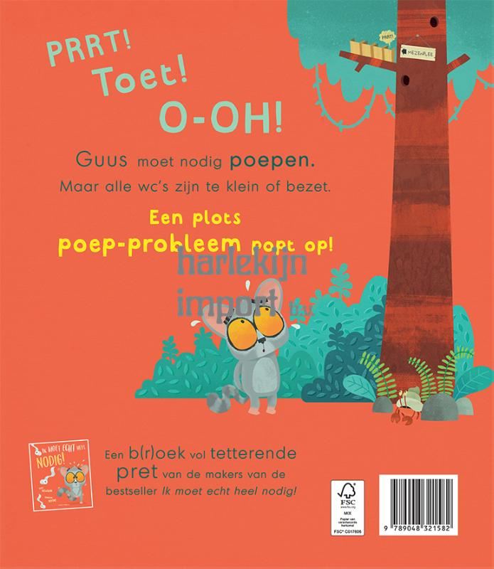 Prep! Toet! O-OH! Guus moet nodig poepen. Maar alle wc’s zijn te klein of bezet. Een plots poep-probleem popt op! Een b(r)oek vol tetterende pret van de makers van de bestseller Ik moet echt heel nodig!