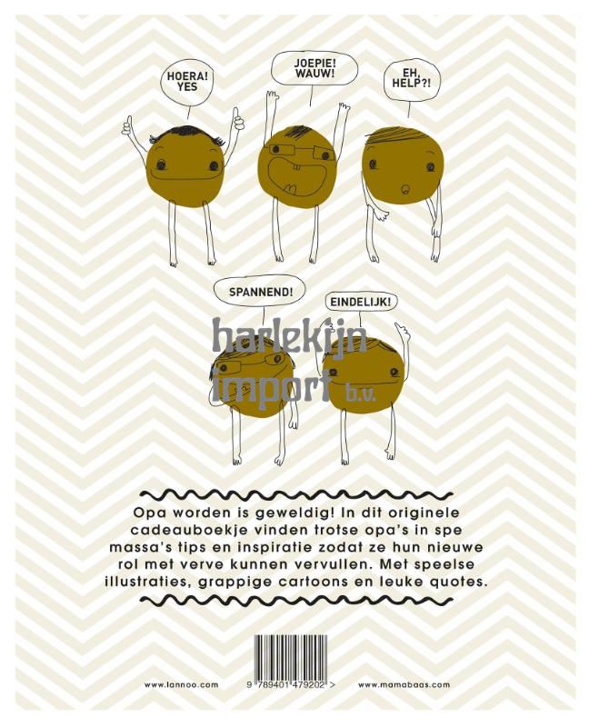 In dit verrassende boekje vinden opa's in spe heel veel tips en inspiratie zodat ze hun nieuwe rol met verve kunnen vervullen. Met speelse illustraties, grappige cartoons en leuke quotes, is dit bovendien hét perfecte cadeau om de komst van een kleinkindje aan te kondigen!