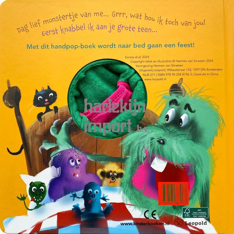 Dag lief monsertje van me... Grrr, wat hou ik toch van jou! Eerst knabbel ik aan je grote teen... Met dit handpop-boek wordt naar bed gaan een feest!